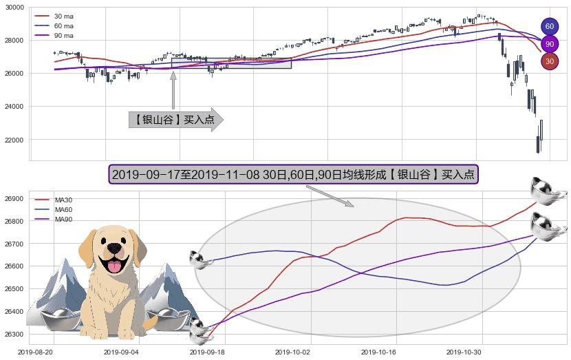 ⚀ 2019-09-18-日至2019-11-08-日显现 30日-60日-90日均线 【银山谷】买入点 看多信号,后市看涨,买入