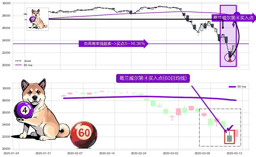 ⚀ 2020-03-12-日显现 葛兰威尔均线 60日均线 第④买入点 下降趋势均值回复的短线反弹信号,后市看涨,买进信号