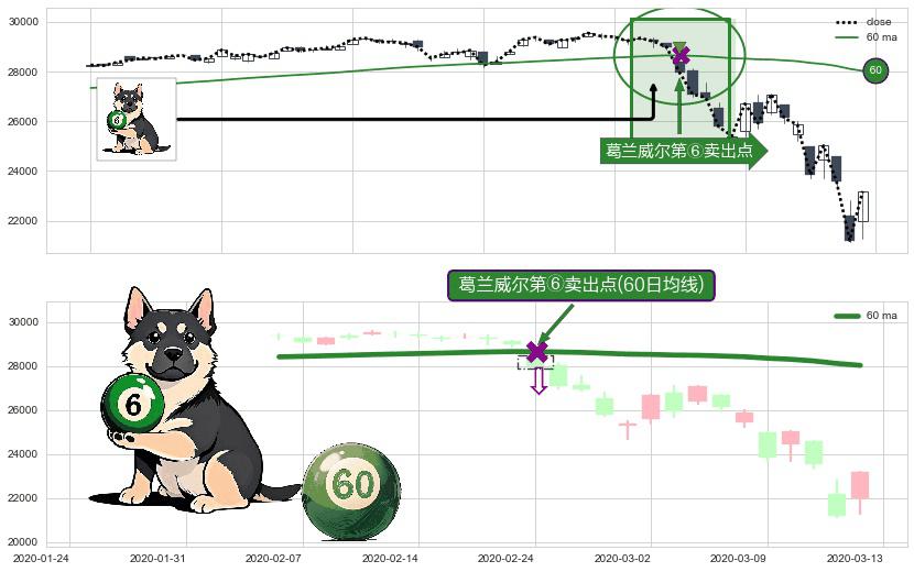⚀ 2020-02-24-日显现 葛兰威尔均线 60日均线 第⑥卖出点 走势反转见顶信号,后市看跌,卖出信号