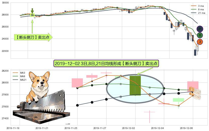 ⚀ 2019-12-02日显现 3日-8日-21日均线 【断头铡刀】卖出点 看空信号,后市看跌,卖出
