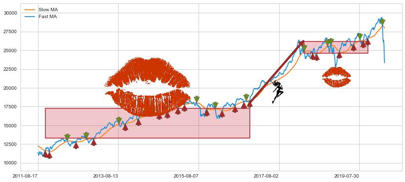 2018-03-19至2019-10-14 慢线与快线多次接触,存在上下穿越,有缠绕