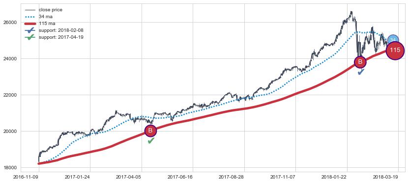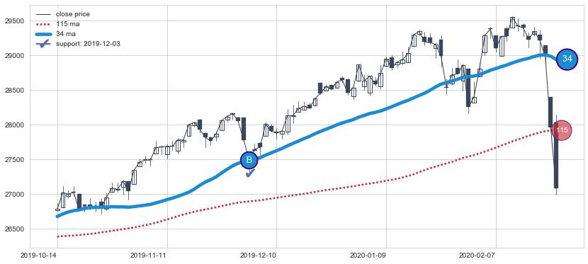 ⚃ 在破位点附近ma走势已有下垂迹象,稍后的走势中ma下降趋势明显,信号【可信度高】