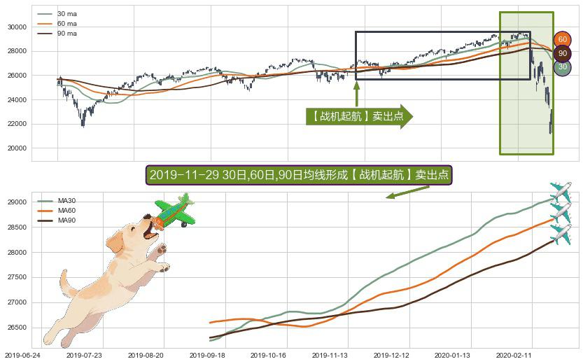 ⚀ 中期均线MA30下穿长期均线MA60形成的交叉是标准 死亡交叉