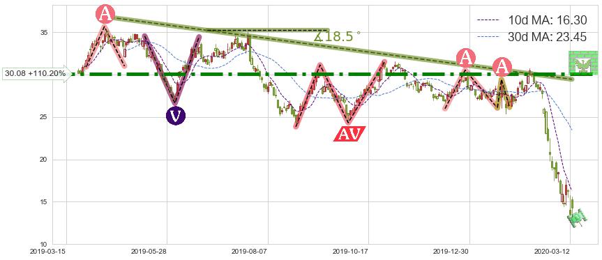 ♘ 阻力价格位30.08,可信任强度99.00%,距离最后交易2020-03-13形成的收盘价格14.31相差 +110.20%