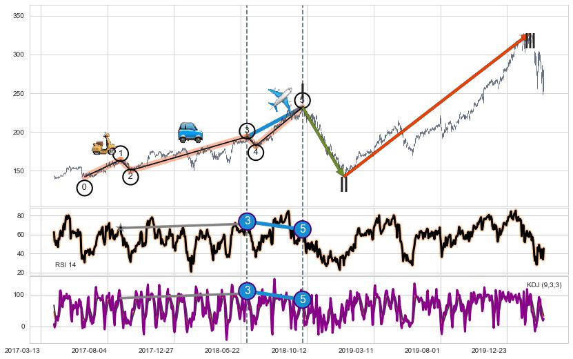 ➣ 第一, 三, 五浪上涨动能逐渐【增强变大】,趋势不断加固