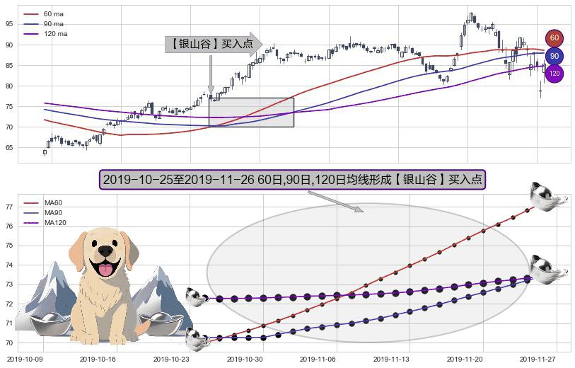 形态多维评估: ⚀ 2019-10-28-日至2019-11-26-日显现 60日-90日-120日均线 【银山谷】买入点 看多信号,后市看涨,买入