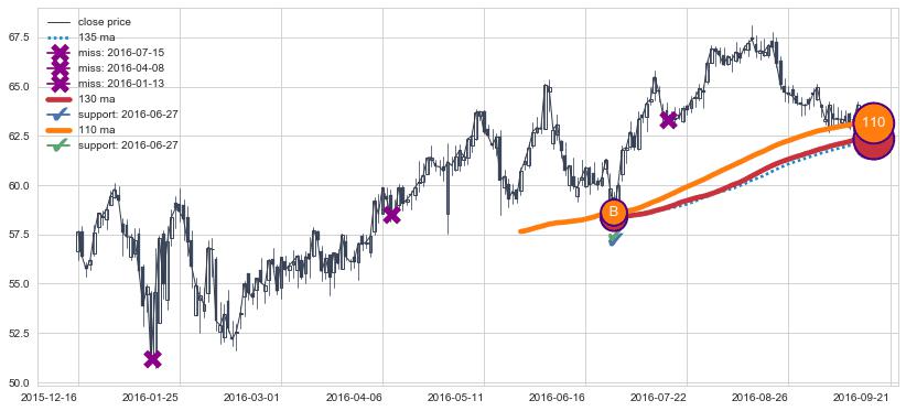 上涨趋势2015-12-16-2016-09-21,均线130, 110确认关键支撑1处