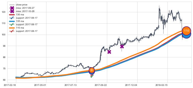 上涨趋势2017-02-16-2018-03-23,均线130, 110, 135确认关键支撑1处