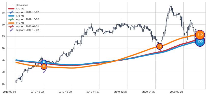 上涨趋势2019-09-04-2020-03-10,均线130, 110, 135确认关键支撑2处