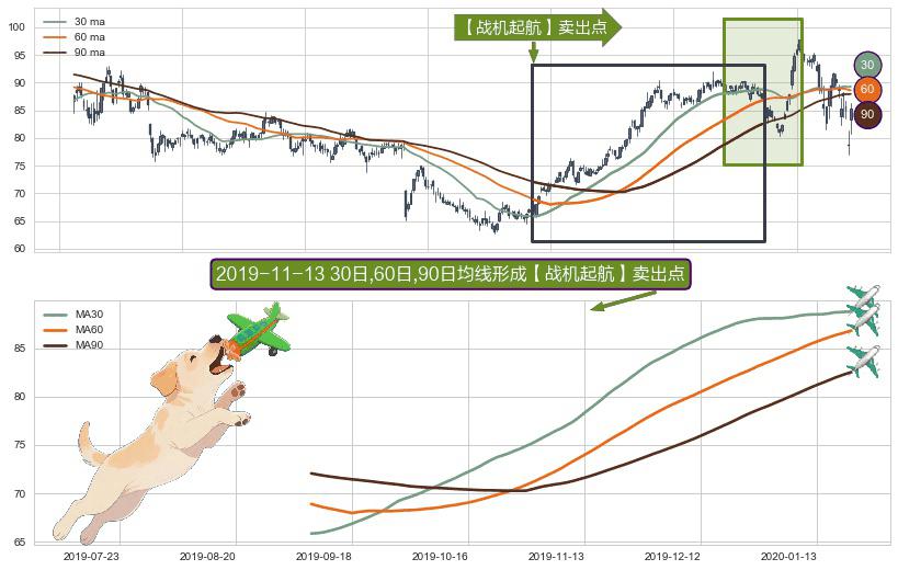 形态多维评估: ⚀ 2019-09-09日-2020-01-22日显现 30日-60日-90日均线 【战机起航】卖出点 看空信号,后市看跌,卖出