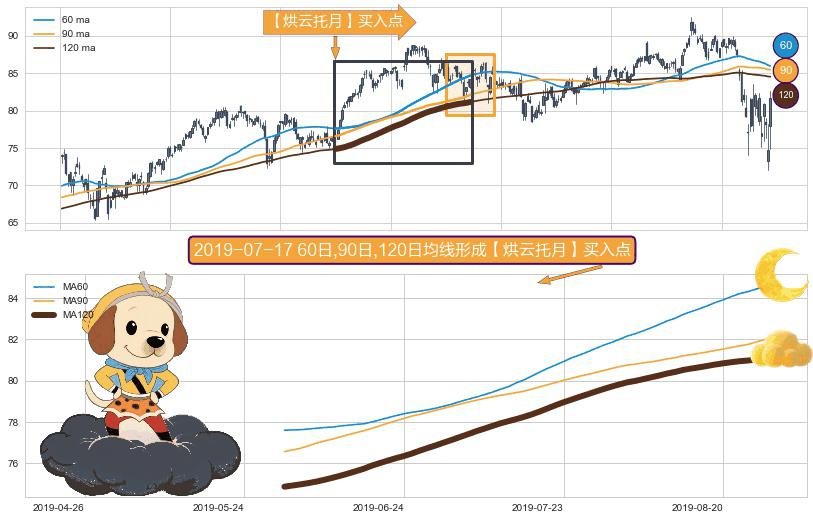 ⚀ 2019-06-03日-2019-08-28日显现 60日-90日-120日均线 【烘云托月】买入点 看多信号,后市看涨,买入