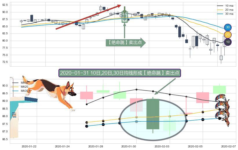⚀ 2020-01-31日显现 10日-20日-30日均线 【绝命跳】卖出点 看空信号,后市看跌,卖出