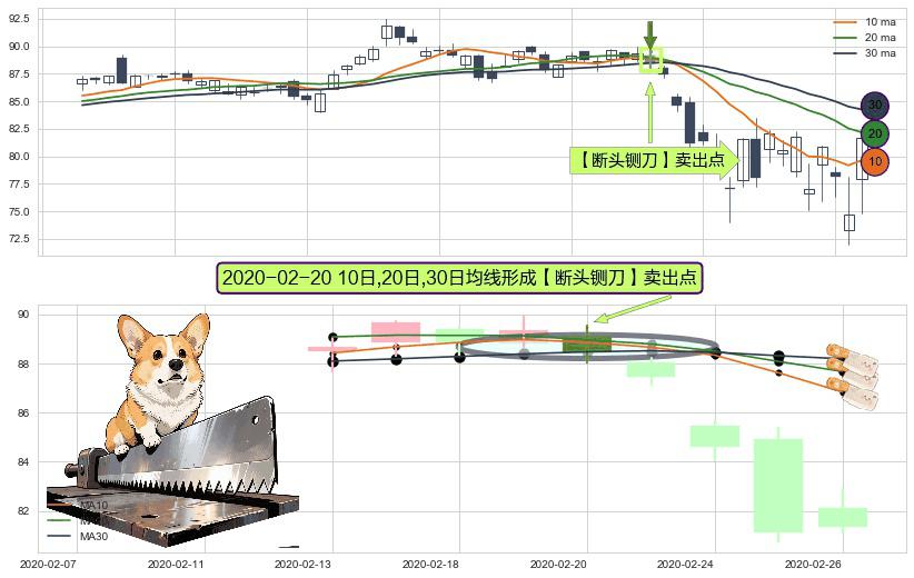 ⚀ 2020-02-20日显现 10日-20日-30日均线 【断头铡刀】卖出点 看空信号,后市看跌,卖出