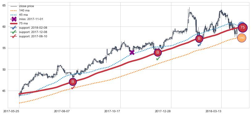 ⚃ 在破位点附近ma依然上升趋势比较明显,平稳迹象是在突破后一段时间后出现,信号【可信度低】