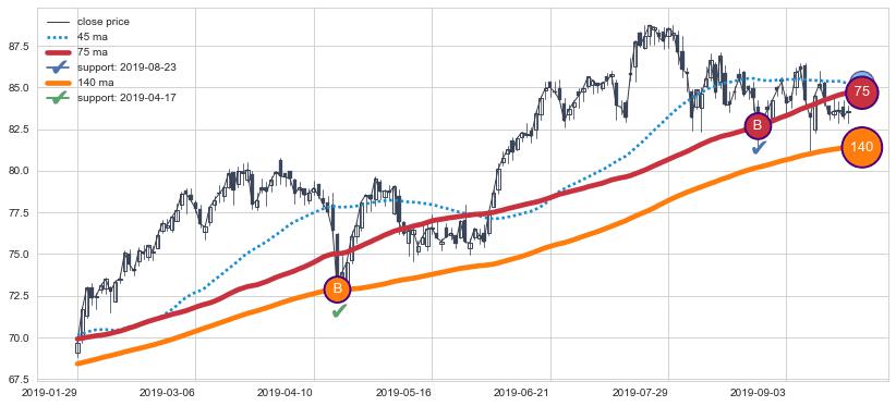 ⚁ MA60和MA90走势平行,且始终保持在短距离内,MA120始终在短中期均线下方,与短中期均线保持一定的距离,微微上行