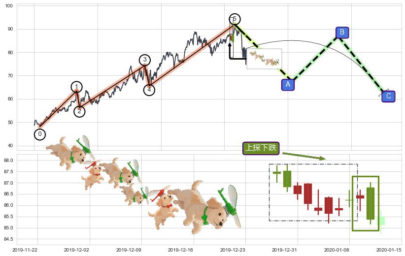 ➢ 高点影线(2020-01-29: 90.23 )→回踩→第二根k线高点(2020-01-27: 90.00 )