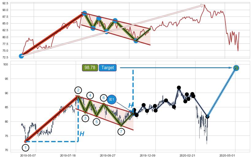 ➣ 最小中继整理涨幅→𝐇: 15.86 (𝐇旗杆的长度:旗杆起点→顶点)