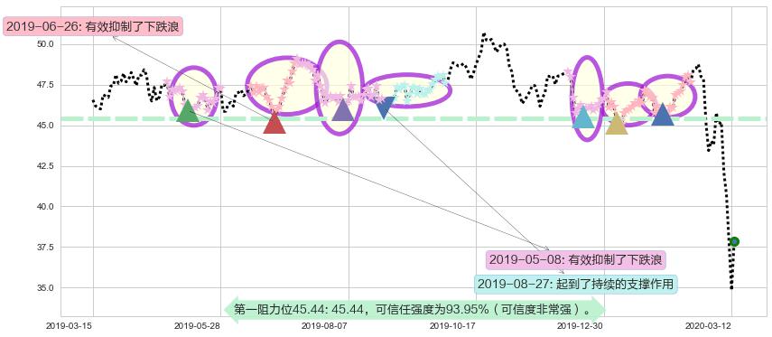2019-05-08: 第一阻力位45.44有效抑制了下跌浪,成功阻止了价格的继续下跌。