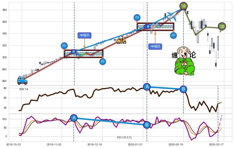 ➣ 【已完成】缠论 起点:2019-10-23,完成第1中枢A,完成第2中枢B,终点:2020-02-19,缠论共98交易日
