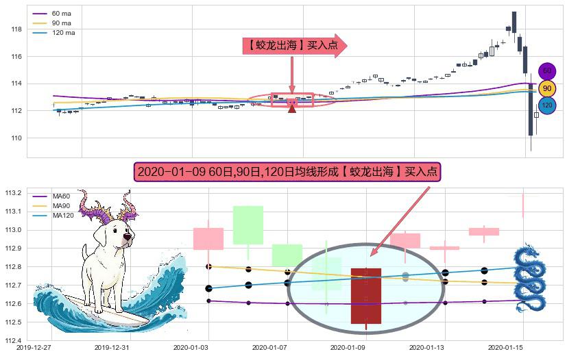 形态多维评估: ⚀ 2020-01-09日显现 60日-90日-120日均线 【蛟龙出海】买入点 看多信号,后市看涨,买入