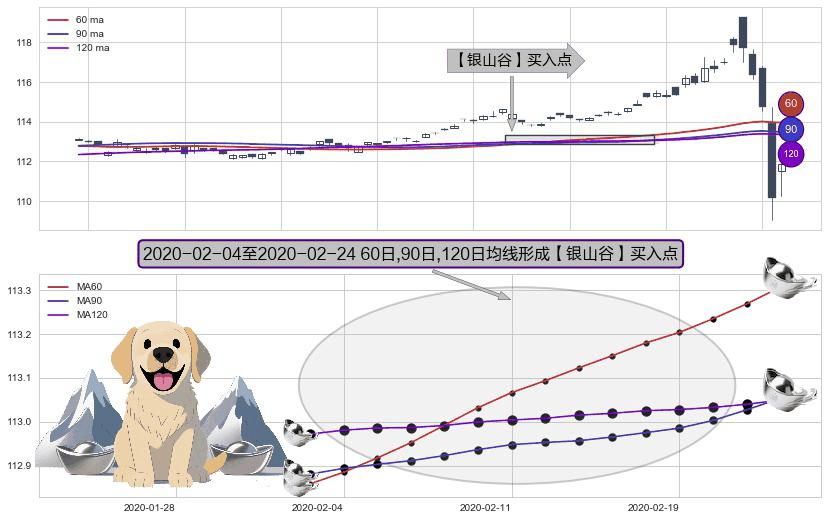 形态多维评估: ⚀ 2020-02-05-日至2020-02-24-日显现 60日-90日-120日均线 【银山谷】买入点 看多信号,后市看涨,买入