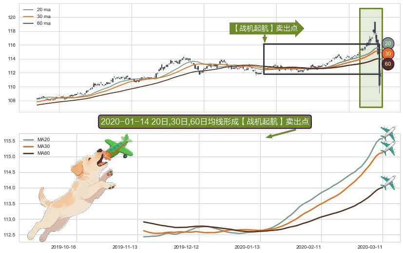 形态多维评估: ⚀ 2019-11-15日-2020-03-11日显现 20日-30日-60日均线 【战机起航】卖出点 看空信号,后市看跌,卖出