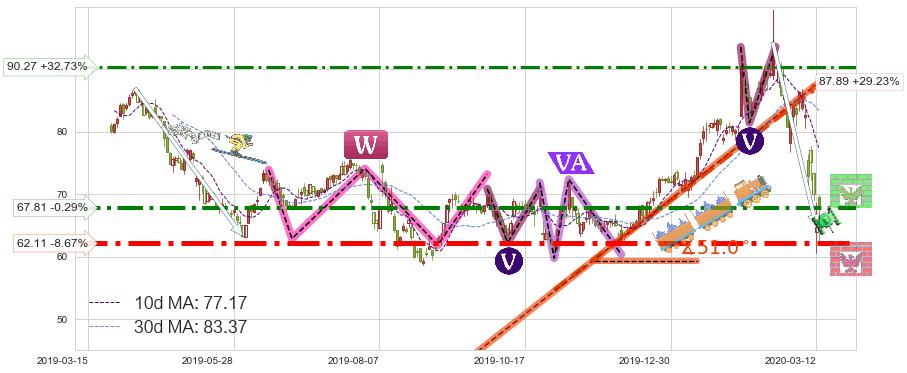 ♘ 支撑价格位62.11,可信任强度96.37%,距离最后交易2020-03-13形成的收盘价格68.01相差 -8.67%
