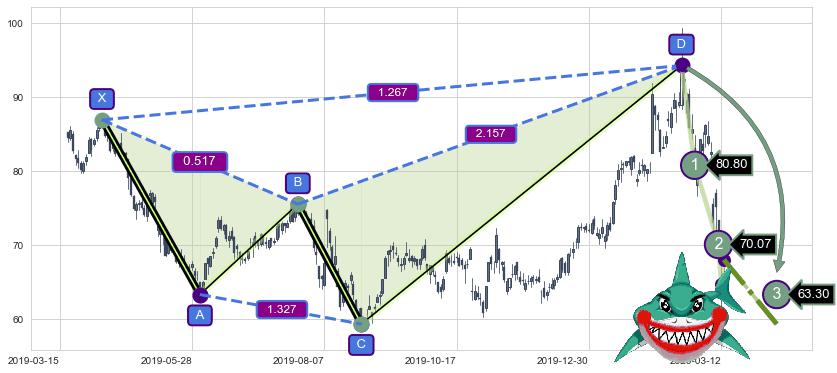 ➣ 已完成【鲨鱼】形态起点X: 2019-04-08, 终点D: 2020-02-20, 共220交易日