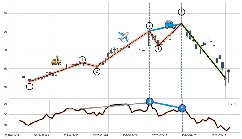 ➢ 第三,五驱动浪端点:【RSI】走势出现【常规背离 & 反转信号】背离程度99.00%,背离夹角角度38.0˚,背离程度较大