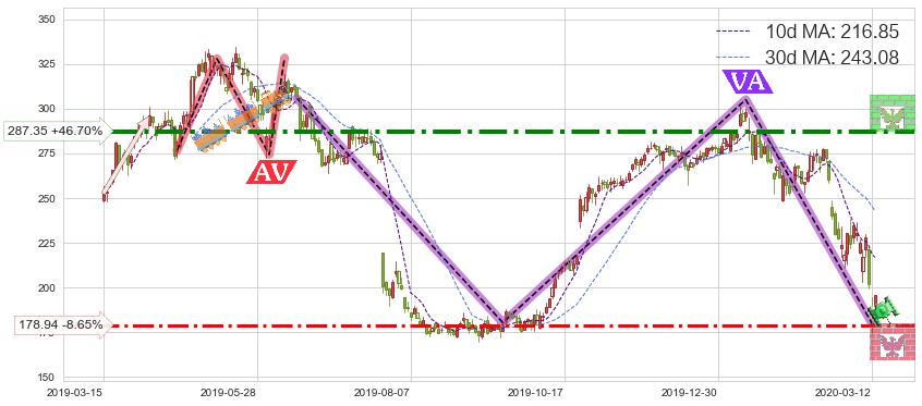 ♘ 阻力价格位287.35,可信任强度77.65%,距离最后交易2020-03-13形成的收盘价格195.88相差 +46.70%