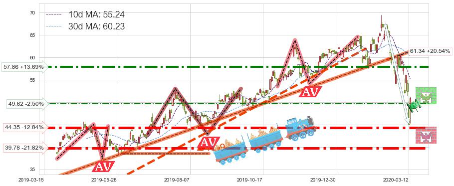 ♘ 阻力价格位49.62,可信任强度45.55%,距离最后交易2020-03-13形成的收盘价格50.89相差 -2.50%