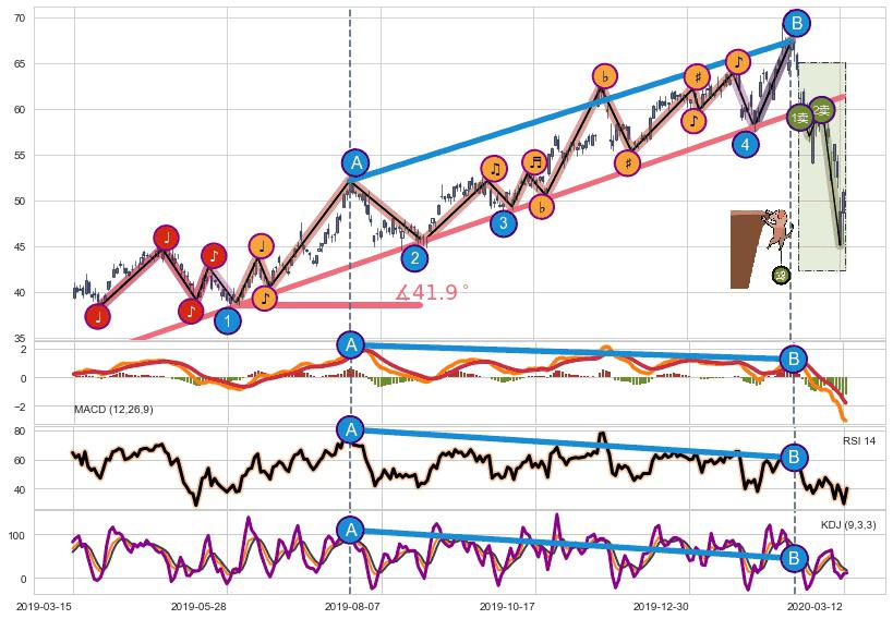 ➣ 【已达成】最小【反转】第一目标价格→(2020-03-12: 46.54 ), 后续继续【反转】下跌动力依然存在,下跌空间适中
