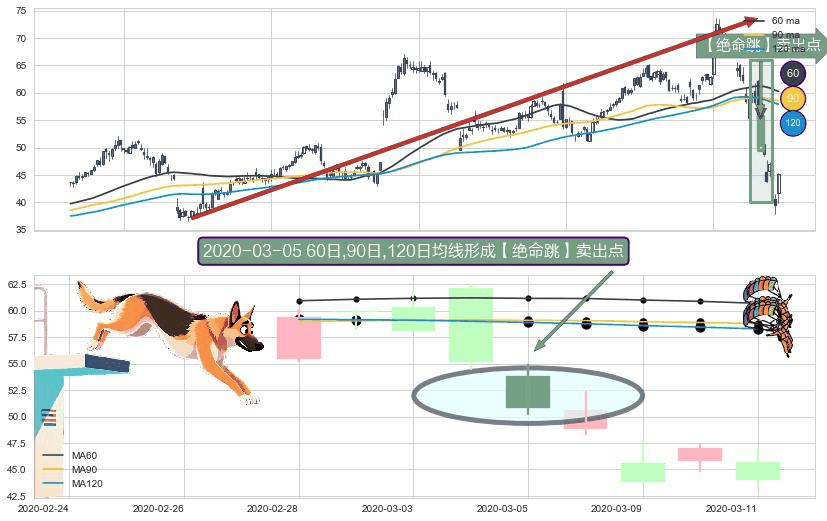 形态多维评估: ⚀ 2020-03-05日显现 60日-90日-120日均线 【绝命跳】卖出点 看空信号,后市看跌,卖出