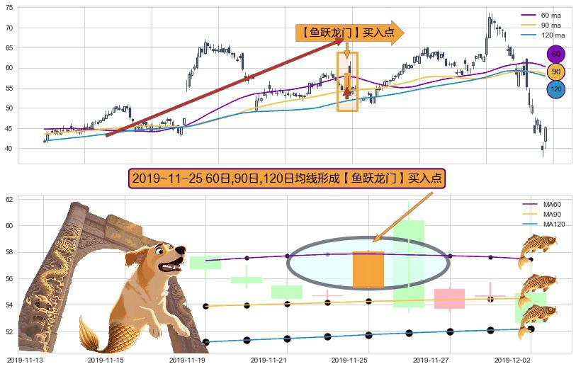 形态多维评估: ⚀ 2019-11-25日显现 60日-90日-120日均线 【鱼跃龙门】买入点 看多信号,后市看涨,买入