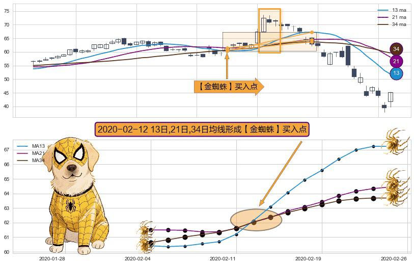 形态多维评估: ⚀ 2020-02-12日显现 13日-21日-34日均线 【金蜘蛛】买入点 看多信号,后市看涨,买入