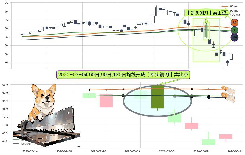 形态多维评估: ⚀ 2020-03-04日显现 60日-90日-120日均线 【断头铡刀】卖出点 看空信号,后市看跌,卖出