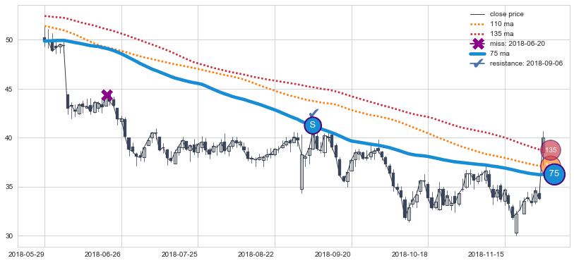 下跌趋势2018-05-29-2018-11-30,均线75确认关键阻力1处