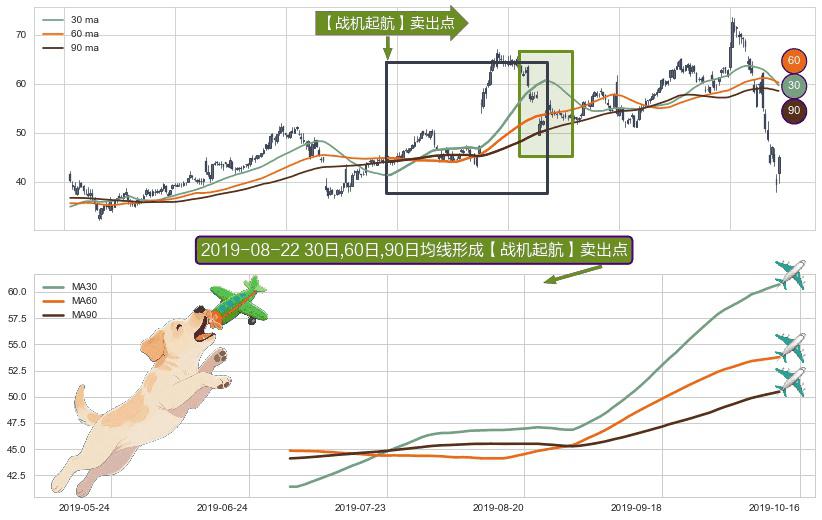 形态多维评估: ⚀ 2019-07-02日-2019-10-11日显现 30日-60日-90日均线 【战机起航】卖出点 看空信号,后市看跌,卖出