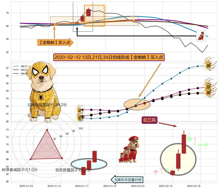 | 2 🅚:锤头线(锤子线) ➕ 🎢:【金蜘蛛】买入点均线组合买入点信号形成后,猜想三条均线周期内的交易者都看好后市,持续上涨 ☞ 看多信号 ⇥ 【均线】交织【🅚线】⇥ 综合量化分数: 51 | > |