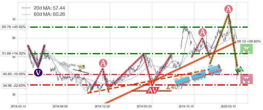 ♘ 支撑价格位40.65,可信任强度56.04%,距离最后交易2020-03-13形成的收盘价格45.19相差 -10.05%