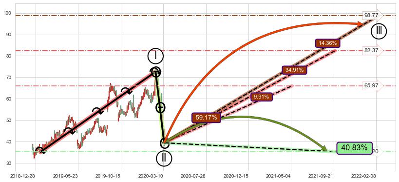 ➣ 循环浪继续向上【平均值】位置(2021-09-24, 82.37),匹配聚类样本比例59.00%, 可能性概率34.91%