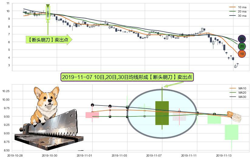形态多维评估: ⚀ 2019-11-07日显现 10日-20日-30日均线 【断头铡刀】卖出点 看空信号,后市看跌,卖出