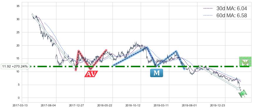 阿布量化系统对AMC娱乐(AMC)长线趋势进行了趋势阶段分析、阻力支撑位分析。