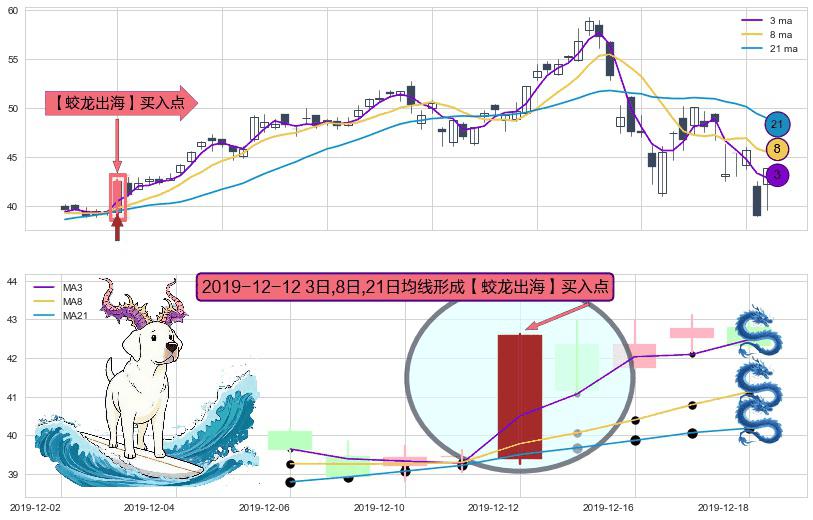 ⚀ 2019-12-12日显现 3日-8日-21日均线 【蛟龙出海】买入点 看多信号,后市看涨,买入
