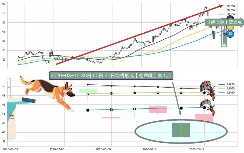 ⚀ 2020-03-12日显现 30日-60日-90日均线 【绝命跳】卖出点 看空信号,后市看跌,卖出