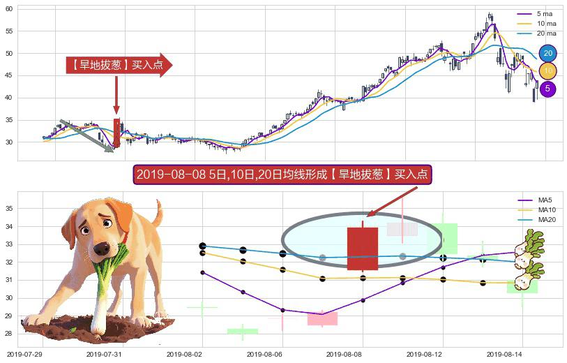 ⚀ 2019-08-08日显现 5日-10日-20日均线 【旱地拔葱】买入点 看多信号,后市看涨,买入