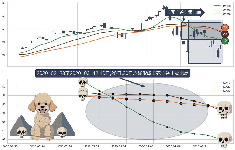 ⚀ 2020-03-02-日至2020-03-12-日显现 10日-20日-30日均线 【死亡谷】卖出点 看空信号,后市看跌,卖出