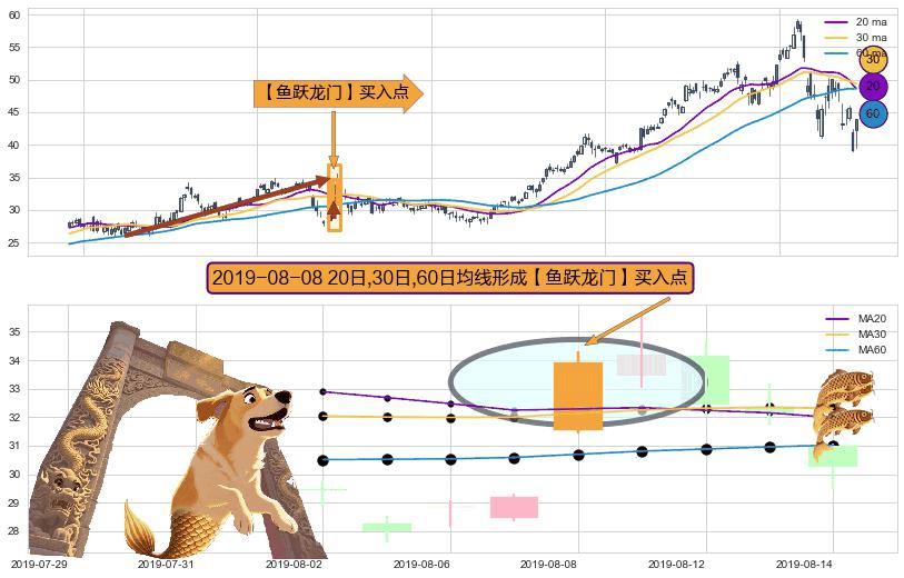 ⚀ 2019-08-08日显现 20日-30日-60日均线 【鱼跃龙门】买入点 看多信号,后市看涨,买入