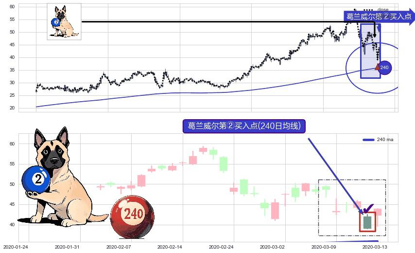 ⚀ 2020-03-12-日显现 葛兰威尔均线 240日均线 第②买入点 上升趋势的中继信号,后市看涨,买进信号