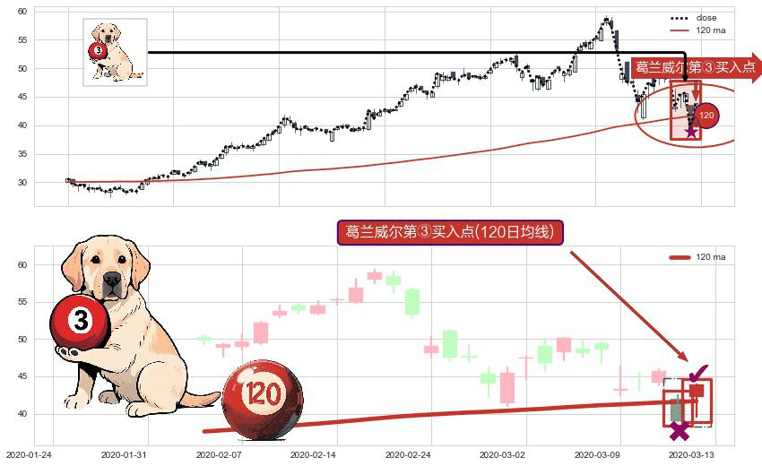 ⚀ 2020-03-13-日显现 葛兰威尔均线 120日均线 第③买入点 上升趋势的中继信号,后市看涨,买进信号